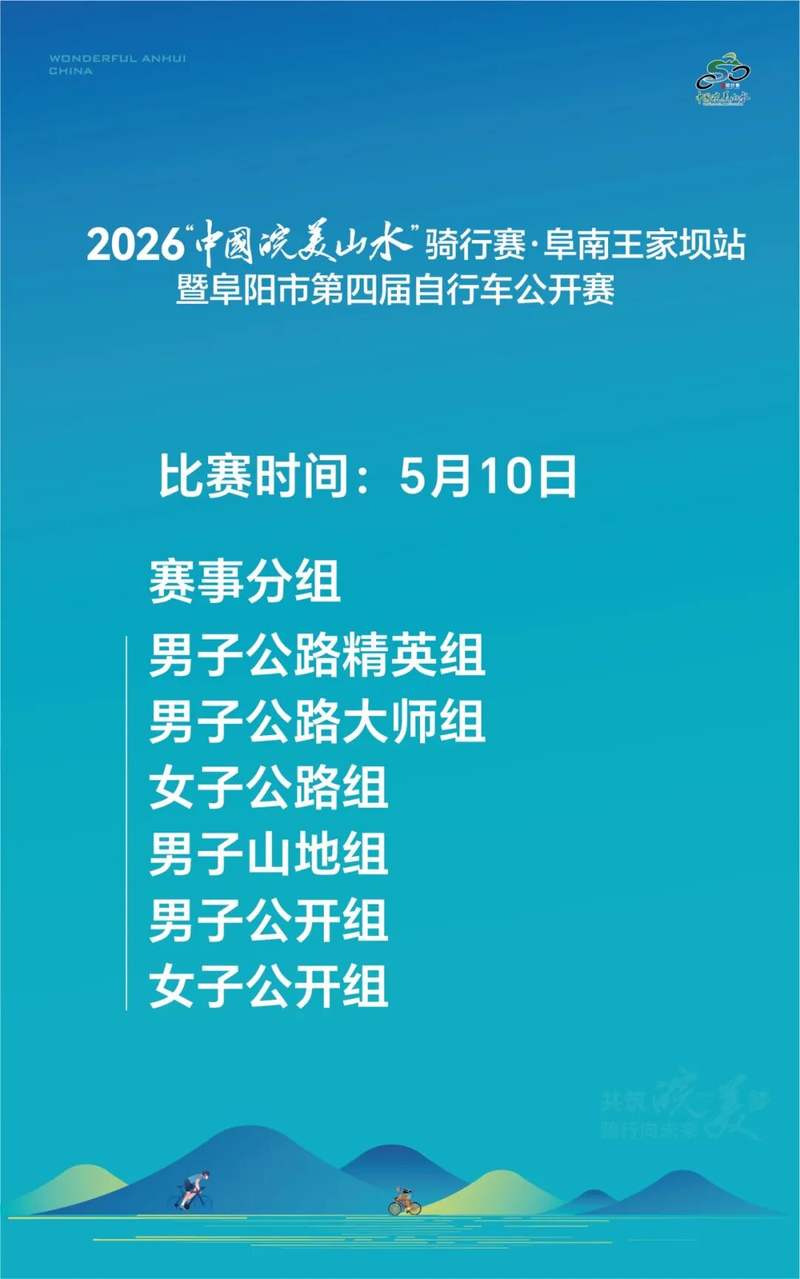 2026“中国皖美山水”骑行赛·阜南王家坝站暨“焦陂特曲”阜阳市第四届自行车公开赛将于5月10日在阜南县王家坝抗洪纪念馆鸣笛开赛。