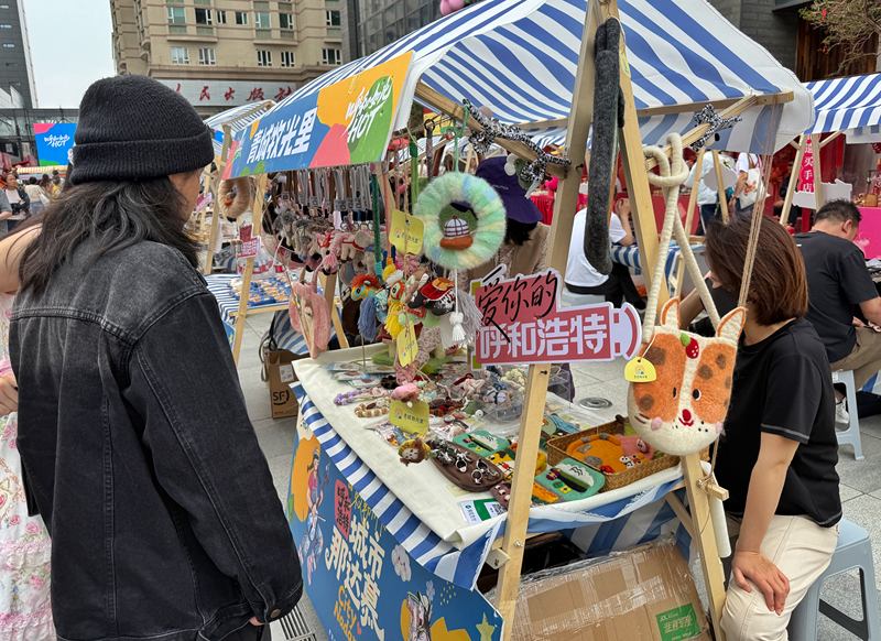 市民在“青城牧光里”摊位前选购文创产品。新京报记者 王贵彬 摄