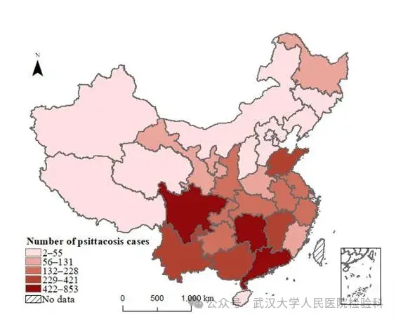 据中国疾控中心传染病所研究报道,自2023年起,我国鹦鹉热月病例数量呈现显著上升趋势,南方显著高于北方地区。