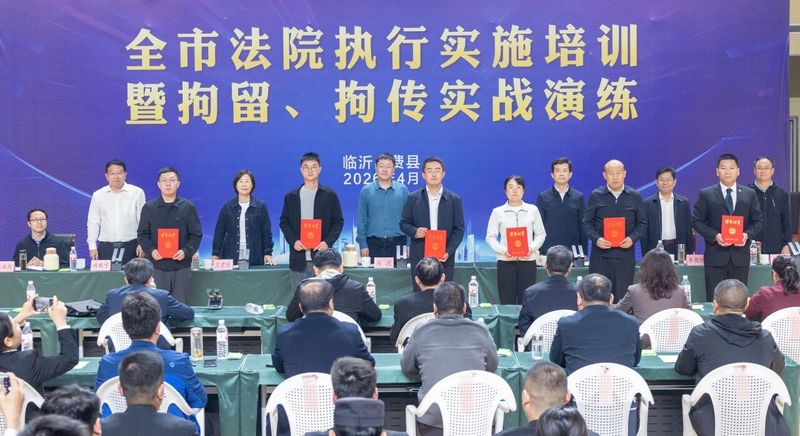 近期,临沂中院执行局联合法警支队在费县开展执行实施培训暨拘留、拘传措施实战演练活动。省法院执行一庭副庭长冯波出席并点评讲话,中院党组成员、副院长王胜致辞,中院政治部主任王君淑,费县法院党组书记、院长杨殿宇出席活动,中院执行局长李国栋主持。