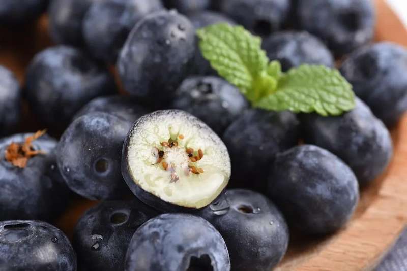 蓝莓中所含的花色苷主要存在于果皮中,建议洗净后整颗吃。