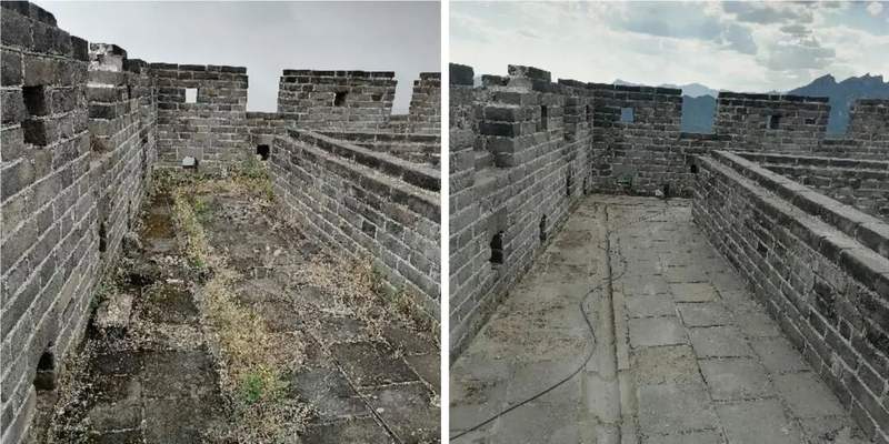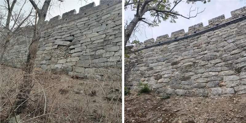 二期工程101-102号敌楼间边墙修缮前后对比图