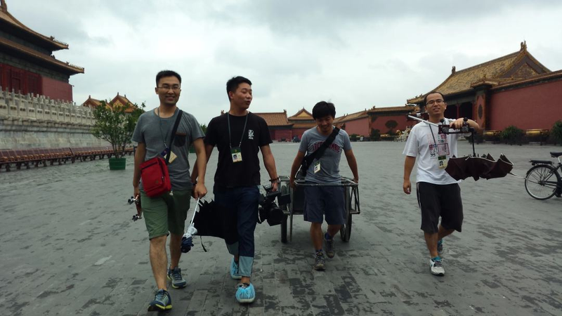 《我在故宫修文物》拍摄团队工作照,右一为叶君。图源/清华大学影视传播研究中心