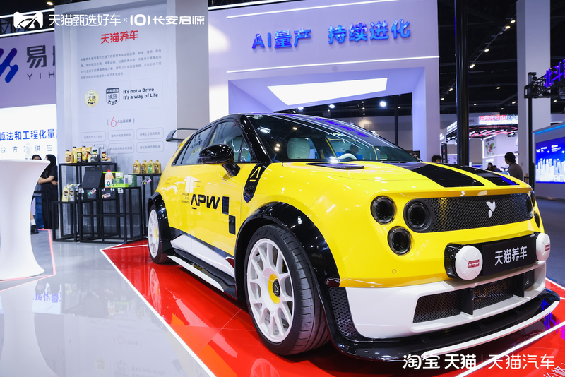 一台轻改蔚来萤火虫——用贴膜轻改的实车案例,展示天猫养车在新能源个性化服务上的技术能力。这不是概念车,而是可以直接复制的门店项目。
