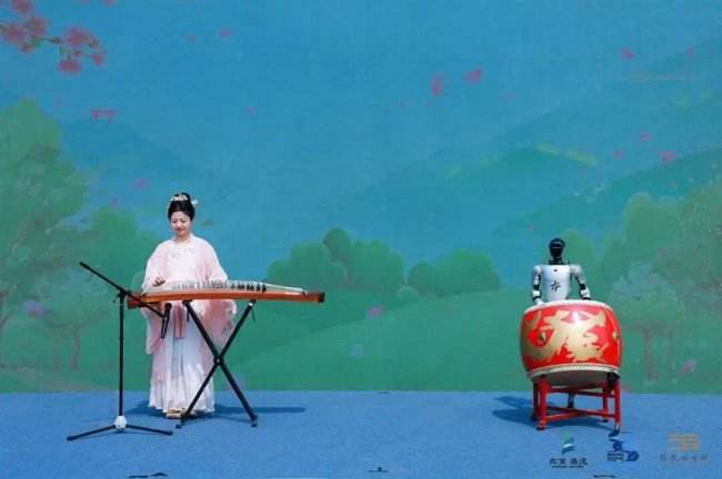 启动仪式开场节目宇树机器人化身智能鼓手,与青年古筝演奏家丰月共同演绎《机鼓琴音》,将科技节奏与传统音律巧妙碰撞,瞬间点燃全场。