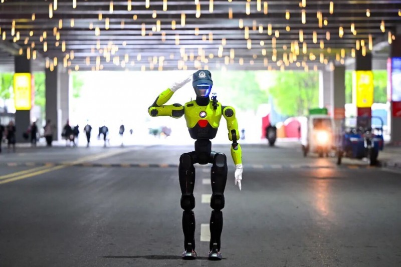 智能交通指挥机器人基于人形双足平台,可精准复现国标指挥手势,实时联动信号灯动态优化策略,并搭载多模态感知技术主动识别劝导不文明行为,成为路面警力的高效延伸。