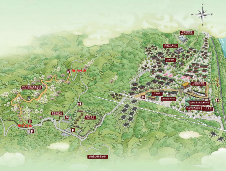 如果是春天过来,满山桃花盛开,一树粉白从山脚漫到山脊,花瓣轻轻落在步道上,连呼吸都带着香气。