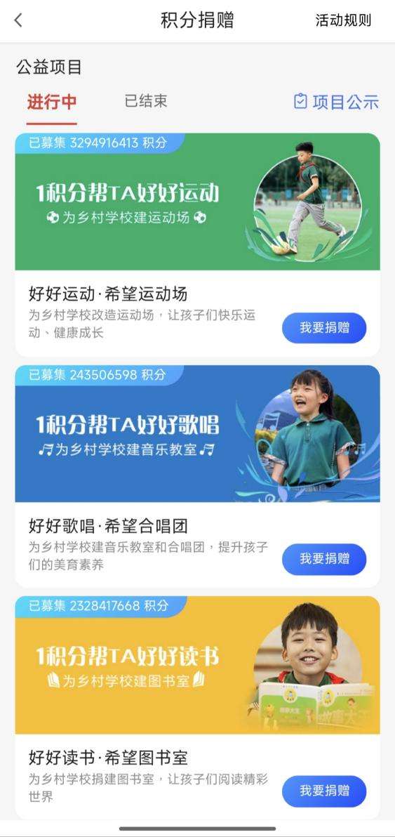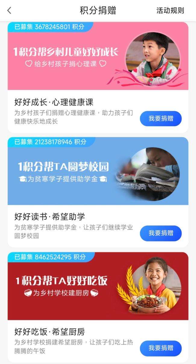 让乡村学子“有书读、读好书”,是“好好读书”项目最朴素的初心。依托广发希望慈善基金,项目构建起以积分捐赠为核心的公益金融生态:广发银行按照“1000积分=1元”的比例,将用户捐赠的积分转化为善款,捐赠至中国青少年发展基金会,支持青少年系列公益项目。“1积分起捐”这一低门槛、指尖轻点的参与方式,让公益变得触手可及。截至目前,已有8万余人次参与捐赠,累计募集积分逾30亿。在世界读书日、新春佳节等节点,项目还联动广发商城推出“爱心订单捐”“你领券,我捐款”等系列活动,将日常消费与积分兑换都赋予公益的温度,让每一份善意都有处安放。