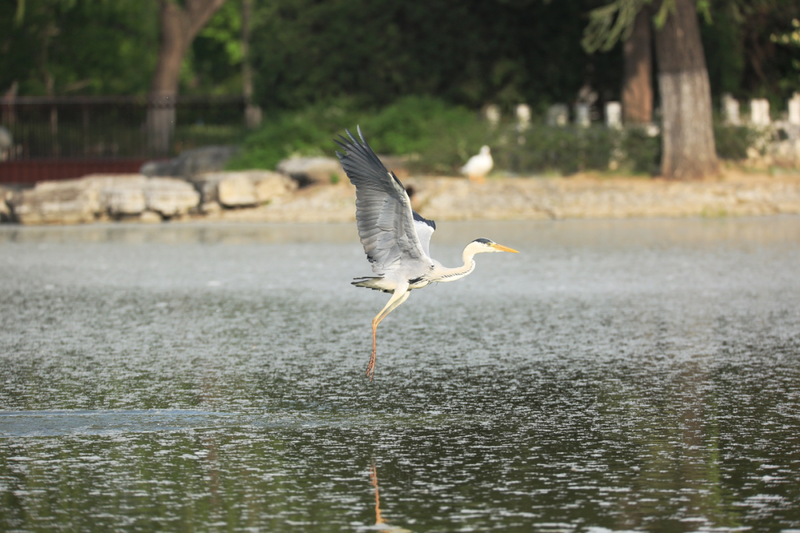四月,暖风拂面,山河渐醒。北京国际雕塑公园的湖面上,一道优雅的身影时而在空中展翅盘旋、时而在潜水区驻足停栖——原来那是一只苍鹭,它成了近日园中最动人的风景。