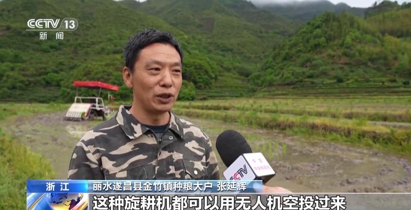 丽水遂昌县金竹镇种粮大户 张延辉:以前我们巴掌地都要自己或者请人工,费时费力。现在这种旋耕机空投过来了,旋耕效果好,对我们农户来说又实用又方便。