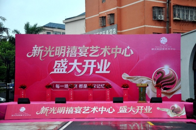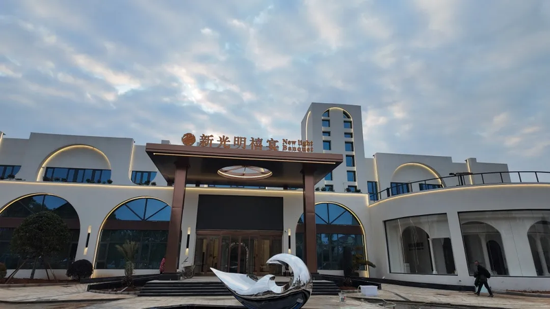 除了办好禧宴艺术中心,新光明餐饮还有一项特别的业务——“宴会下乡”。针对农村地区举办婚宴、寿宴、升学宴时场地有限、流程烦琐的问题,新光明团队可以上门提供从场地布置、舞台搭建到节目策划的全流程服务。