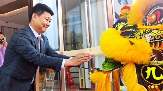 随后的剪彩和舞狮环节将现场气氛推向高潮。沈图欢夫妻共同为舞狮点睛,祥狮腾跃采青,将祥瑞和祝福洒满全场。