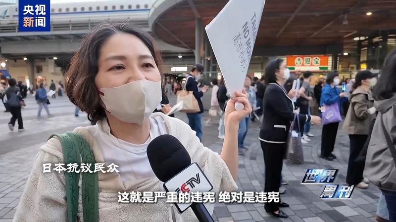 日本抗议民众:这就是严重的违宪、绝对是违宪,太不正常了。这种事情怎么可以被允许?为什么这种事情可以通过内阁会议决定?我完全无法理解。
