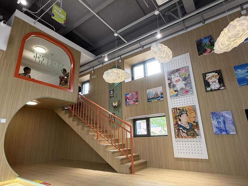 邻里中心二层设置了儿童阅读区,开业当天吸引小朋友前往。新京报记者 田杰雄 摄