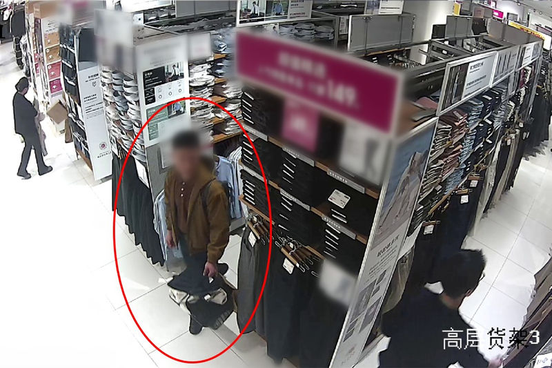 胡某根据网店订单在服饰店内行窃。上海长宁警方供图