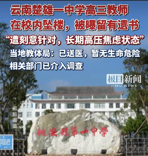 近日,云南楚雄姚安一中的一位老师被曝坠楼。图/极目新闻