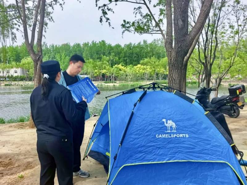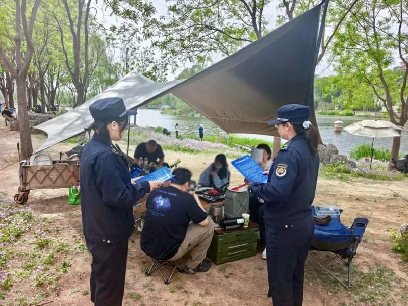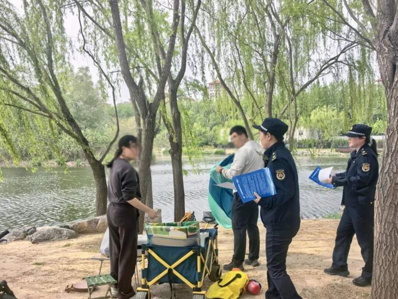 行动中,执法队员始终坚持“宣传教育为主、行政处罚为辅”的原则,聚焦公园沿岸绿地、亲水平台、露营聚集地等重点区域,开展全方位巡查排查。看到携带烤炉、木炭等准备露天烧烤或准备违规钓鱼的市民,执法人员第一时间上前耐心劝阻,结合典型案例,现场讲解相关法律法规,并发放环保宣传手册,引导大家自觉选择环保、安全的休闲方式,让文明理念在柔性沟通中真正入脑入心。