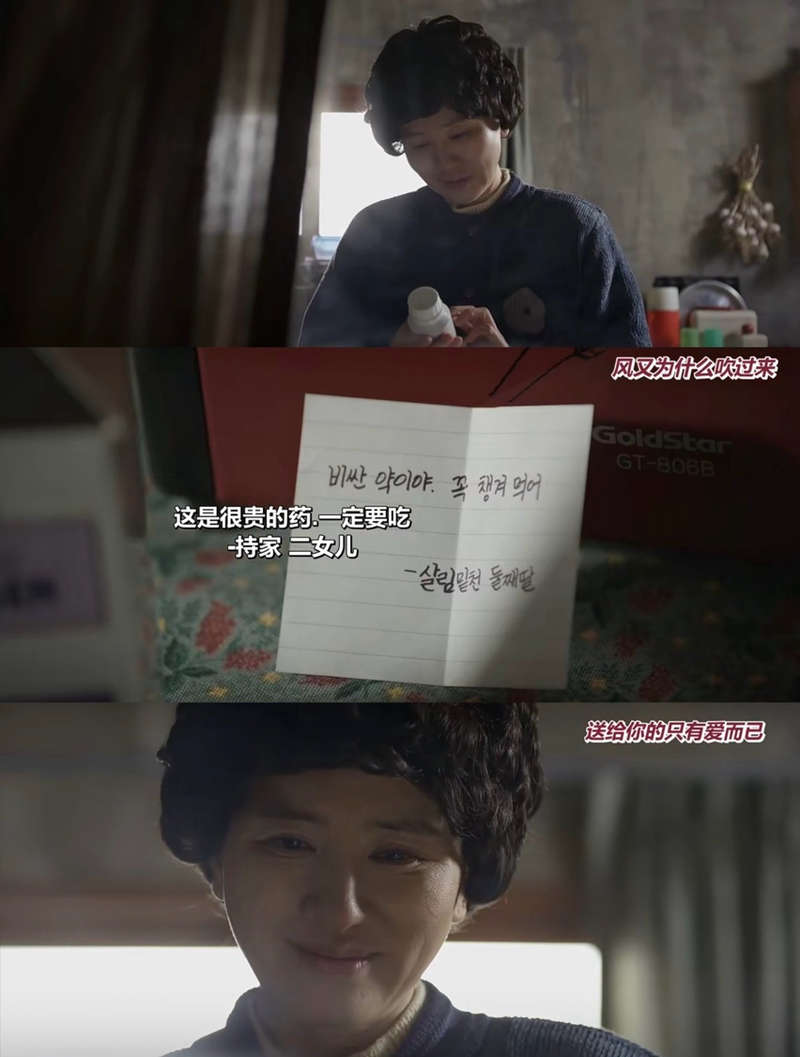 德善的妈妈独自坐在窗边,手里拿着一瓶药。旁边有张纸条:“这是很贵的药,一定要吃。——能帮家的二女儿。”她看着纸条,笑了。她不知道女儿什么时候买的,也不知道女儿是不是看出了什么。但那一刻,她被看见了。