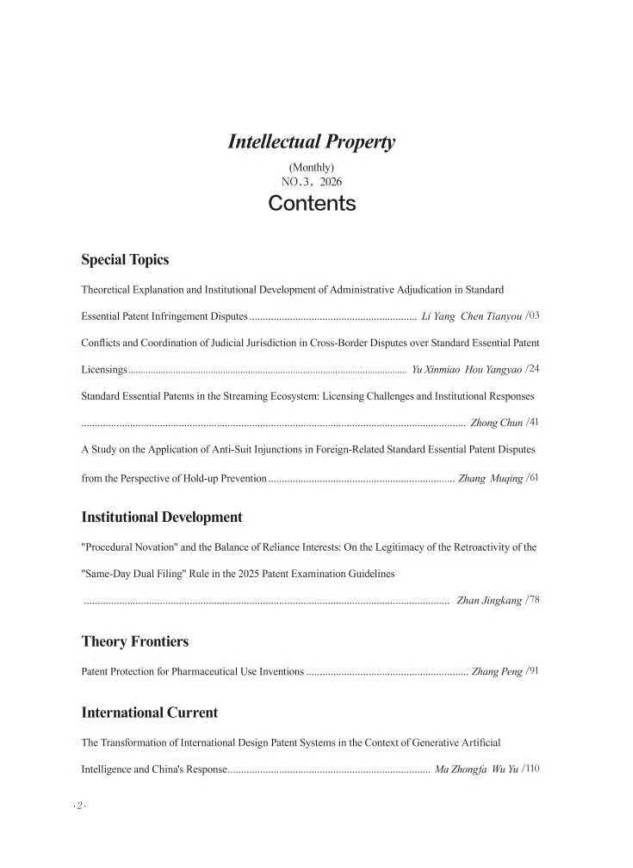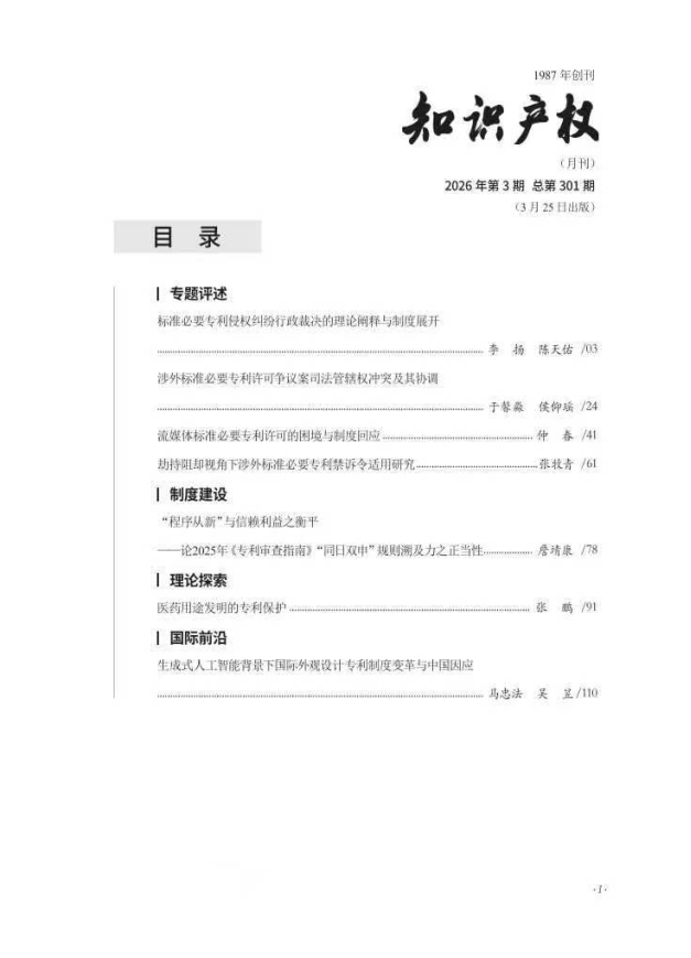 李扬、陈天佑在《知识产权》2026年第3期撰文《标准必要专利侵权纠纷行政裁决的理论阐释与制度展开》指出,标准必要专利侵权纠纷适用行政裁决具有充分的法律依据,是专利权人救济途径选择权的应有之义,也是维持权利人与实施者博弈力量相对平衡的制度保障,更是延续我国双轨制保护体系、争取国际制度竞争优势的政策工具。管理专利工作的部门在行政裁决程序中应当且有权审查公平合理无歧视许可原则,但审查应聚焦于谈判行为而非许可费率的精细计算,并以“理性人”视角客观判断双方过错。在程序协调上,应以专利是否同一及程序提起主体为二元标准分类处理行政裁决与侵权诉讼、确认不侵权诉讼的关系;当行政裁决与许可使用费诉讼或反垄断民事诉讼并行时,基于先决关系审查与防止滥用程序权利视角,不应当然或轻易中止行政裁决程序。