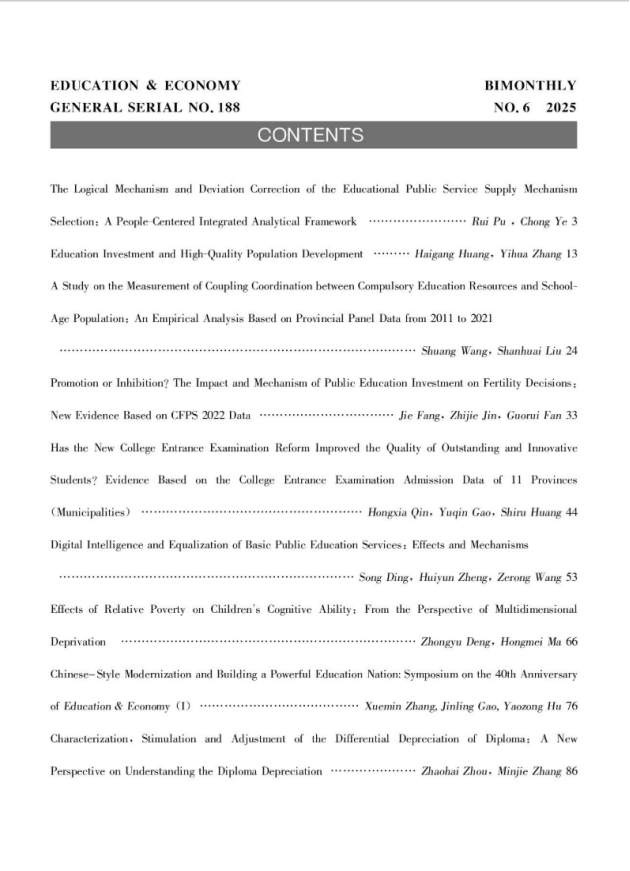 蒲蕊、叶冲在《教育与经济》2025年第6期撰文《教育公共服务供给机制选择的逻辑机理及偏差矫正:基于人民中心的整合性分析框架》指出,教育公共服务供给机制选择是教育公共服务供给的核心,也是教育公共服务供给理论和实践中的重要议题。教育公共服务供给机制选择不仅涉及“由谁供给、如何供给”的问题,更涉及对“为了谁”这一教育公共服务根本问题的明确回答。新时代的教育公共服务供给机制选择必须坚持以人民为中心,充分彰显党“人民至上”的价值追求。从广大人民群众的教育需求出发,在借鉴制度分析与发展框架主要元素和基本架构的基础上,构建基于人民中心的整合性分析框架,进而厘定以人民中心为逻辑起点、行动环境与行动主体间的互动为逻辑线路、办好人民满意的教育为逻辑旨归的教育公共服务供给机制选择的逻辑机理。在实践中,面对公共价值彰显不足、多重环境因素掣肘以及多元供给主体协同不畅等原因造成的供给机制选择偏差,需要从价值共创、供需适配、组织协同三个方面进行矫正,以期办好人民满意的教育,助力教育强国建设向纵深推进。