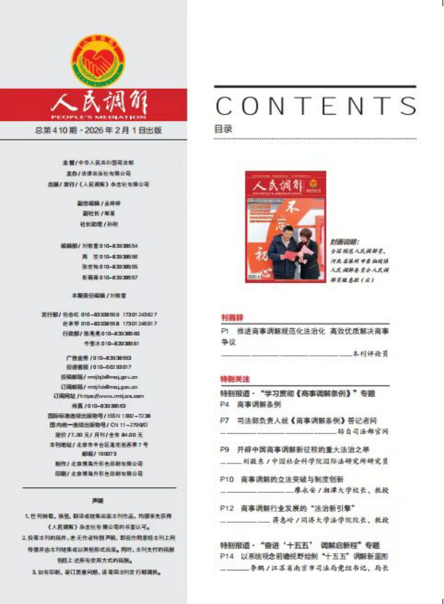 苟玉伦在《人民调解》2026年第2期撰文《以复调对接试点破局 推进行政争议实质性化解》指出,2025年3月,四川省司法厅针对行政复议案多人少、调解经验不足、机制不健全等突出问题,在全省6个市、18个县(区)部署开展行政复议与调解工作对接试点,着力推动行政争议实质性化解,践行新时代“枫桥经验”。试点工作聚焦痛点难点,多点发力、精准施策:搭建多元调解平台,整合各类资源,因地制宜设立行政争议化解中心,自贡市还建立首个跨省行政争议调解室;完善制度体系,细化调解范围、规范流程、强化质效保障,出台多项配套制度;整合调解力量,构建复合型专家库和联动体系,形成“纵向贯通、横向联动”的化解格局;创新调解模式,推出“智慧调解”“七步调解法”“4311”机制等特色做法,结合理论研究与人才培训,提升化解能力。