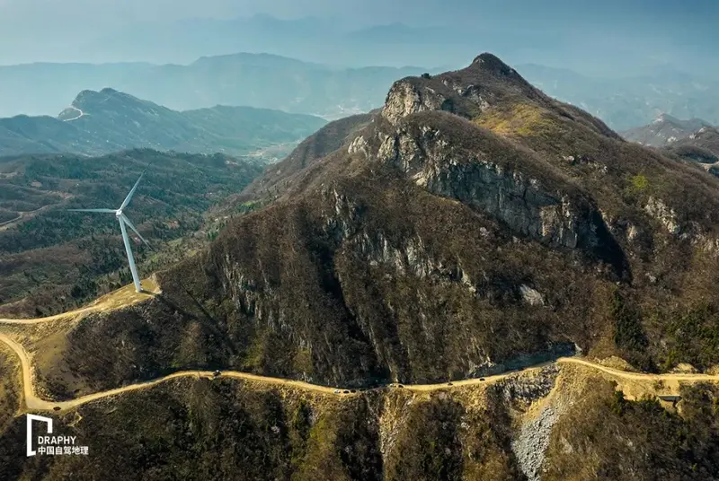 在牛草山的分叉口,右侧是前往观音庙,左侧则是前往天河尖(大别山最高峰1771米)的风车山脊公路,海拔落差500米,基本没有护栏,对司机的驾驶技术和心理抗压能力都是挑战。
