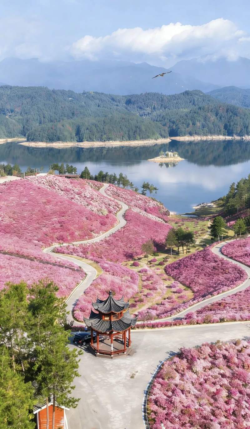 每年3月下旬至4月下旬,藏在天堂湖畔的水岸花海,淡紫色的紫云英铺满河岸,与远处的青山、古朴的村落构成一幅静谧绝美的田园画卷,最重要是无需门票、免费停车、随时可赏!