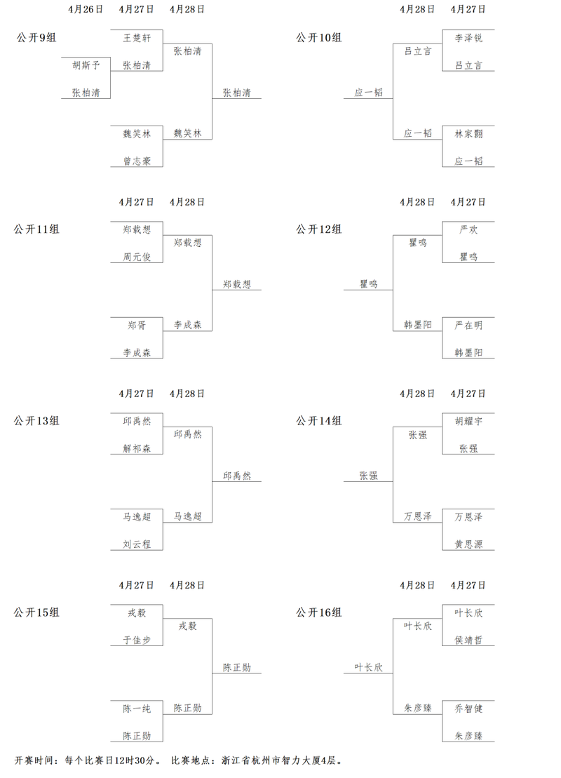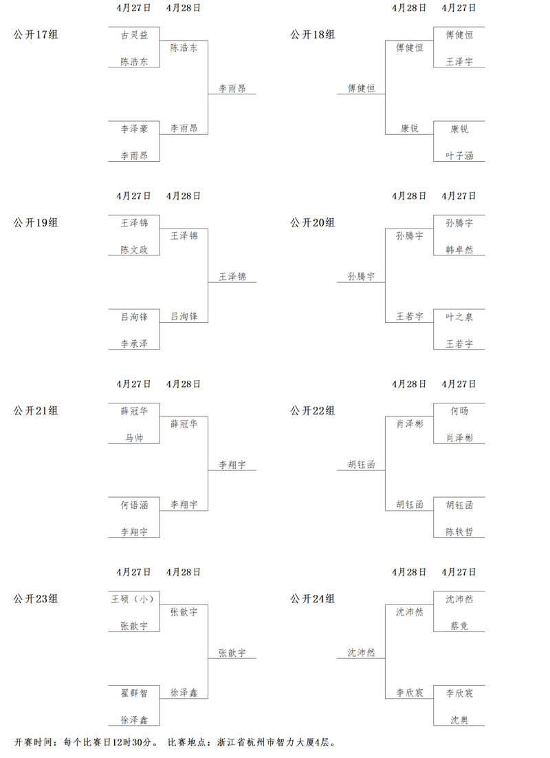 公开组1-24组对阵: