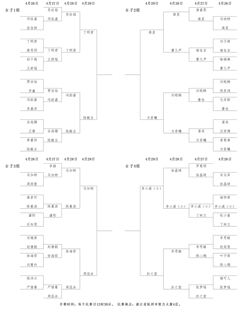 女子组1-4组对阵: