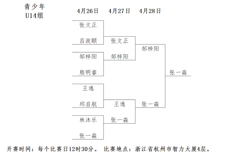 青少年U14岁组对阵: