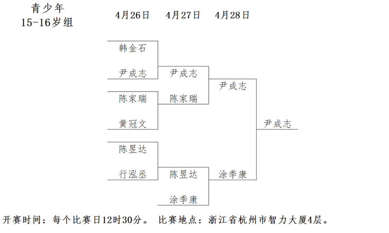 青少年15-16岁组对阵: