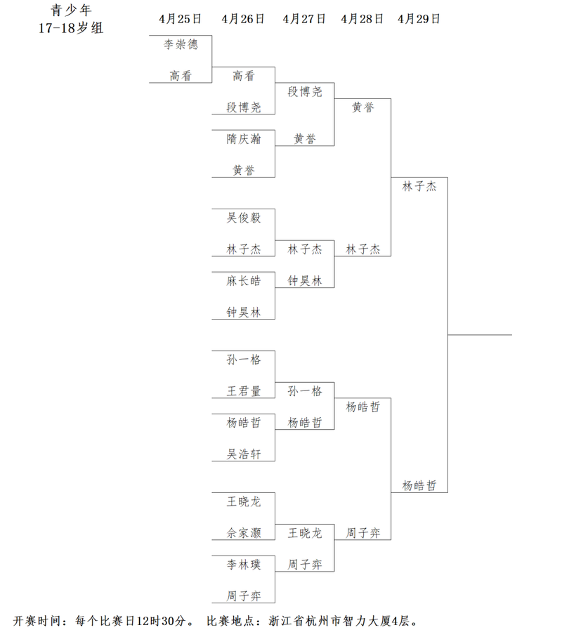 青少年17-18岁组对阵: