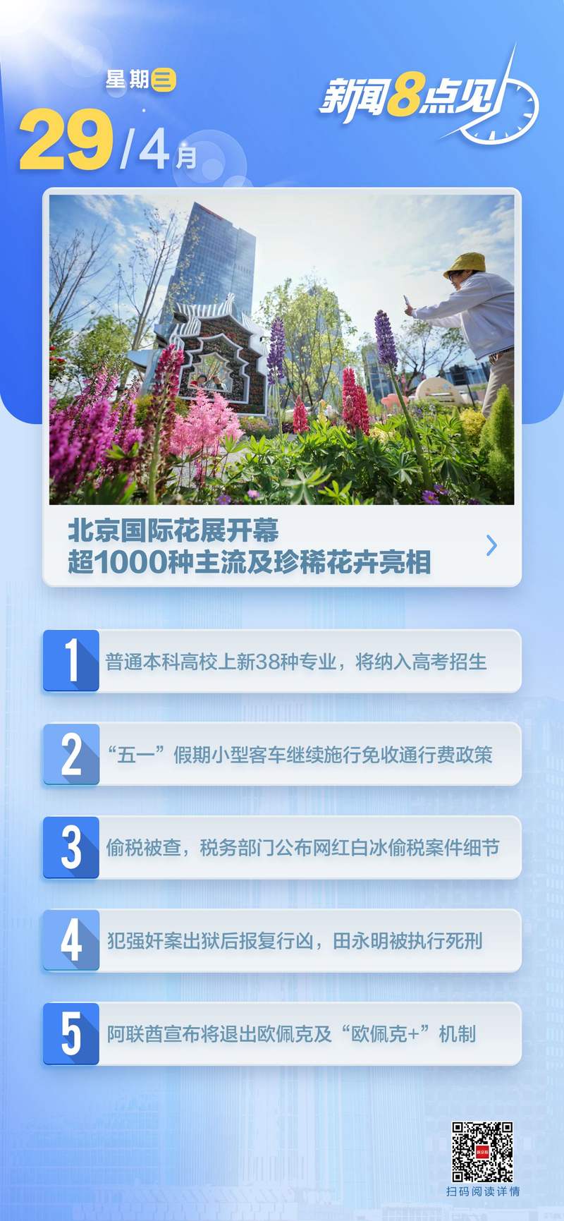 4月28日,2026北京国际花展在北京丽泽金融商务区拉开帷幕。本届花展包括2.5万平方米核心主展区、10万平方米室外展区,布局60余个精品花园,展期将持续至5月30日,为首都市民献上一场春日花卉盛宴。(新京报)阅读全文>>>