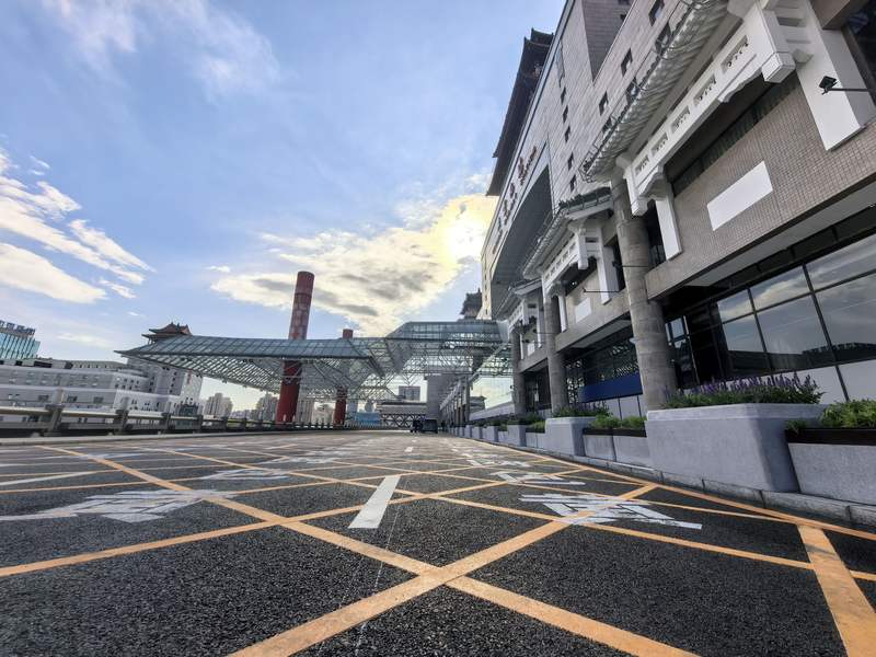 北京西站螺旋盘道昨起恢复运行,二层增加一条车道。北京市重点站区管委会供图