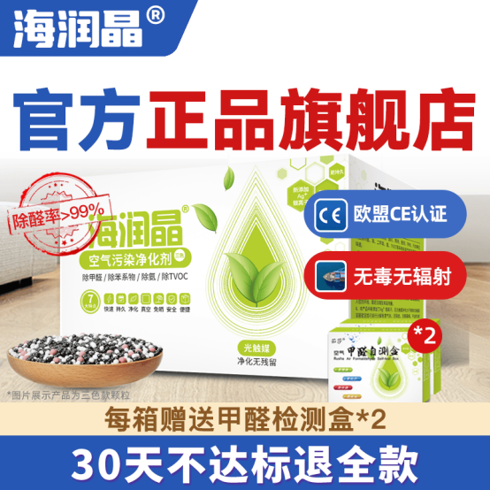 全屋大面积长效基础控醛,选用海润晶、速蓝石两款99%高除醛率炭包,筑牢全屋长效净化基底;