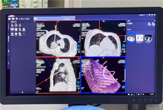此次接受治疗的两位患者均为澳门居民,年龄分别高达79岁和87岁。前者确诊乳头状肺腺癌,病灶位置刁钻,传统穿刺路径难以实现;后者为肺癌复发,高龄与既往手术史让常规外科方案难以实施。“按传统方式,两根针的穿刺深度和角度根本无法实现,不敢想象。”参与会诊的澳门仁伯爵综合医院医生坦言。